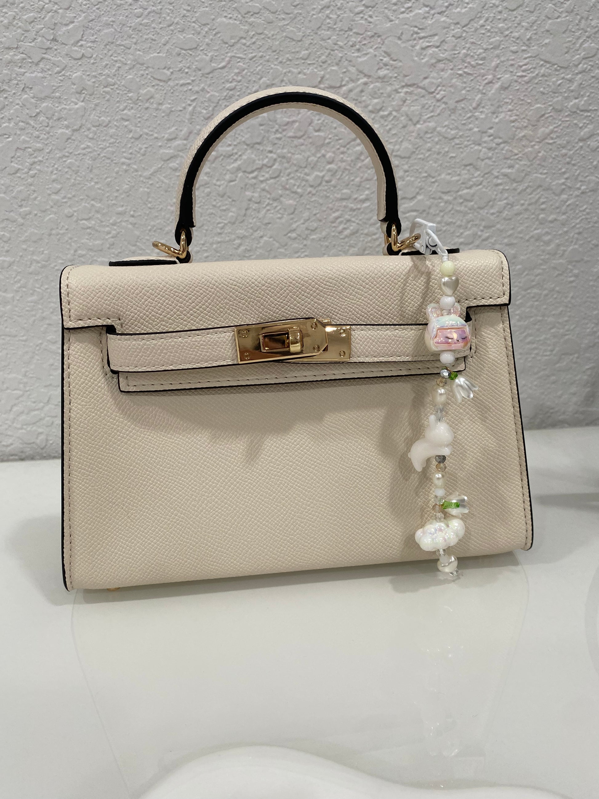 Add a pop of playful personality to your keys, purse, or backpack with our handmade Bunny Girl Beaded Charm. This adorable accessory features an acrylic bunny girl bead paired with shimmering crystal-style beads and soft faux pearl accents. Finished with a coordinating white clasp, it’s the perfect little charm to brighten your essentials or to give as a thoughtful, one-of-a-kind gift.